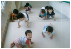 さふらん保育園は、子どもが自らの遊びの中で、色々と学ぶことができるよう、また身体の諸機能を発達させることができるよう、保育室や共同の間、階段等に遊びコーナーを設けました。